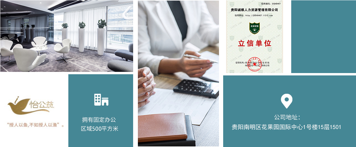 貴陽誠維人力資源管理有限公司始創于2005年,公司總部位于中國西南地區筑城貴陽。貴州省首批取得《人力資源服務許可證》和《勞務派遣許可證》的專業服務公司。 公司業務涵蓋國內勞務派遣、人力資源外包、人事代理、招聘、管理咨詢與培訓等服務。 自成立16余年以來,長期致力于服務民眾、服務社會、服務市場,連續6年被評為“人力資源誠信服務機構”。 2019年8月成功當選“貴州省人力資源服務行業協會”副會長單位。 2019年3月成功當選“貴陽市人力資源服務行業協會”會長單位。 2020年-2021年連續兩年入選